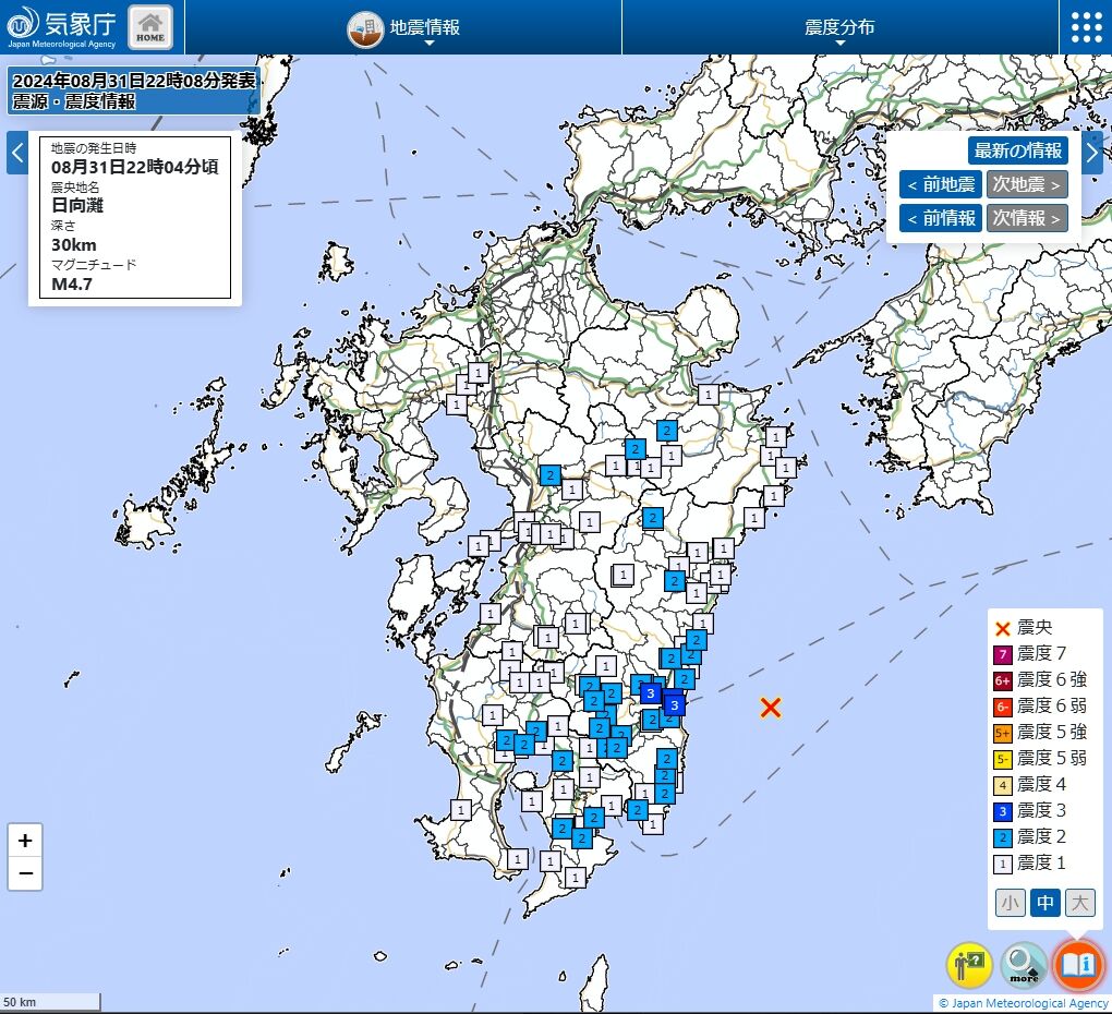 これだ宮崎で震度3 // 地震情報 - Yahoo!天気・災害https://t.co/2kPc1wufsS pic.twitter.com/v8DyIiZEx0August 31, 2024