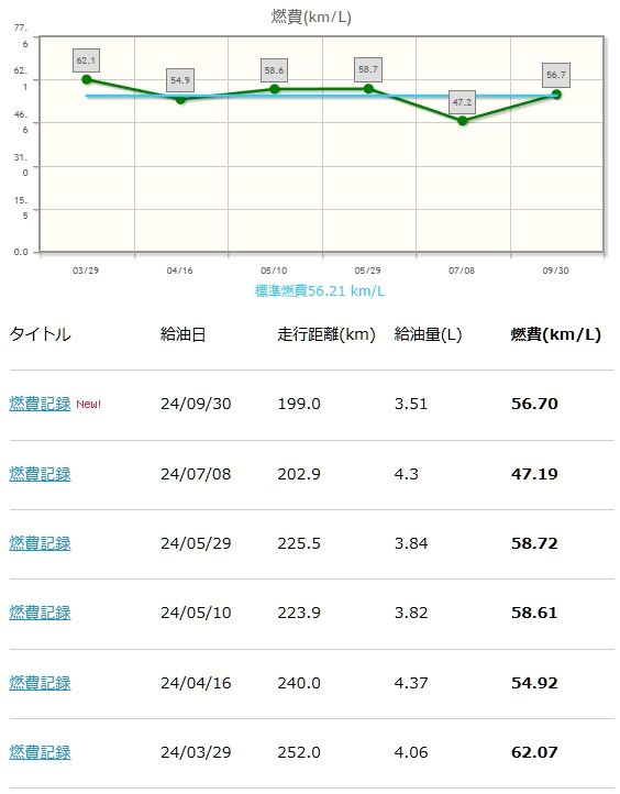 容赦ないおひさまの下、給油してきた。走行距離199km。給油量3.51L。燃費56.69km/L。レギュラー160円/L(税込)。平均値56.21km。この体重と近場しか乗らないことからすれば良好なり。 #ハンターカブ #CT125 #JA65 #燃費 pic.twitter.com/m2ptErWTsC September 30, 2024