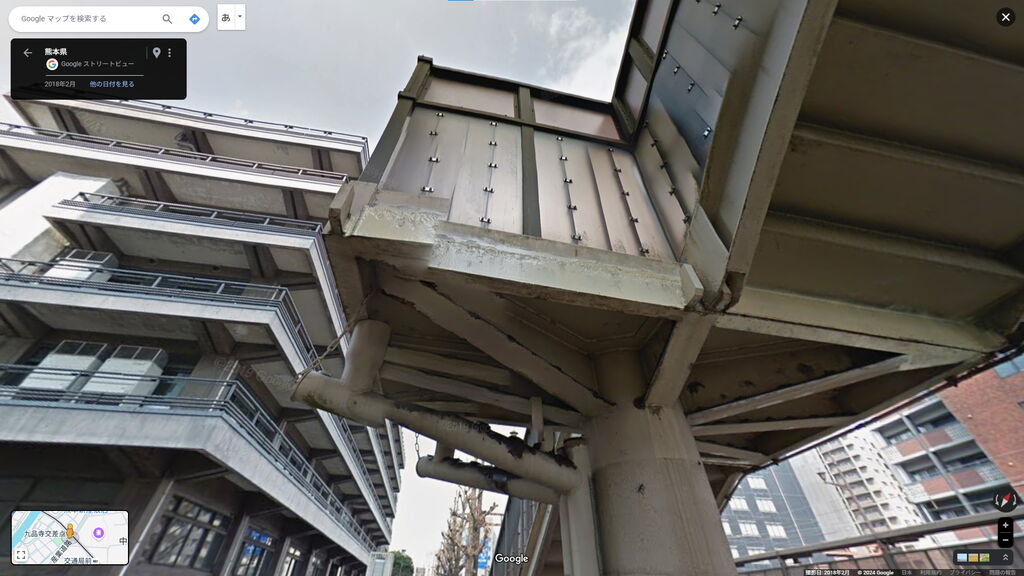 さっき九品寺交差点の陸橋歩いてて気が付いたけど、NTT側に謎の踊り場があるのよね。ストリートビューでさかのぼれる範囲でもなにの痕跡かわからず…。歩道拡張の予定でもあって踊り場だけ作ったのかしら pic.twitter.com/r50nyQ4Io5 October 22, 2024